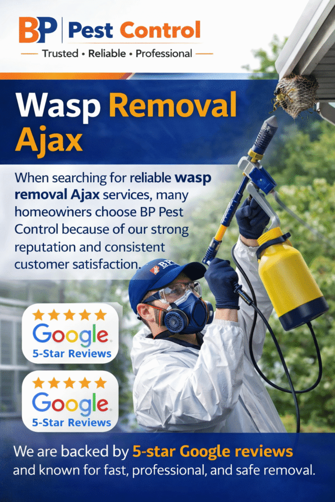 Dealing with wasps and hornets around your property in Oshawa can quickly turn from a minor nuisance into a serious safety concern. These aggressive stinging insects are highly territorial and will defend their nests when disturbed. Their ability to sting multiple times makes them especially dangerous for children, pets, and individuals with allergies. If you are noticing increased wasp or hornet activity, professional wasp and hornet removal Oshawa services are the safest and most effective solution. In Oshawa’s residential neighborhoods and growing commercial areas, wasps and hornets are a common seasonal issue. These insects build nests in hidden or elevated locations, often going unnoticed until the colony becomes large and active. By that point, the risk of stings and aggressive encounters increases significantly. At BP Pest Control, we provide expert wasp and hornet removal Oshawa services designed to eliminate nests safely and prevent future infestations. With years of experience and a reputation as a 5 star rated Google business, we are trusted by homeowners and businesses across Oshawa for reliable and professional pest control solutions. If you suspect a nest or are seeing frequent wasp or hornet activity, acting early can help prevent the problem from escalating. Why Wasp and Hornet Removal Oshawa Is Important Wasp and hornet infestations are not something to ignore. These insects can become increasingly aggressive as their colonies grow, especially during the peak summer months. Aggressive Behavior Wasps and hornets are naturally defensive insects. If their nest is disturbed—even accidentally—they may attack in groups. This is especially dangerous when nests are located near entryways, patios, decks, or high-traffic areas. Ability to Sting Multiple Times Unlike bees, wasps and hornets can sting repeatedly. This means that a single encounter can result in multiple painful stings, increasing the risk of injury. Rapid Colony Growth A wasp or hornet colony begins with a single queen in the spring. Over time, the colony grows rapidly, often reaching hundreds or thousands of insects by late summer. The longer a nest remains untreated, the more dangerous it becomes. Risks to People and Pets Wasps and hornets pose serious risks to: Professional wasp and hornet removal Oshawa ensures these risks are properly managed. Differences Between Wasps and Hornets Understanding the difference between wasps and hornets can help identify the infestation and determine the best removal approach. Wasps Wasps are typically smaller and more slender than hornets. They often build open or partially exposed nests and are commonly found around residential properties. Hornets Hornets are larger and more aggressive than wasps. They build enclosed nests, often high in trees or attached to structures. Both species require professional removal due to their aggressive nature. Common Types of Wasps and Hornets in Oshawa Paper Wasps Paper wasps are commonly seen around homes and buildings. They build small, umbrella-shaped nests under rooflines. Yellowjackets Yellowjackets are one of the most aggressive types of wasps. They often nest underground or inside wall cavities, making them difficult to detect. Bald-Faced Hornets These insects are known for building large aerial nests and are extremely protective of their colonies. Why Wasps and Hornets Are Common in Oshawa Oshawa provides an ideal environment for wasps and hornets due to its mix of residential areas, green spaces, and commercial developments. Seasonal Activity Wasps and hornets are most active during spring and summer. Their activity peaks in late summer when colonies are at their largest. Abundant Food Sources These insects are attracted to: Homes and businesses that provide easy access to food are more likely to experience infestations. Ideal Nesting Locations Wasps and hornets build nests in a variety of locations, including: These locations offer protection and allow colonies to grow undisturbed. Signs You Need Wasp and Hornet Removal Oshawa Increased Insect Activity Seeing multiple wasps or hornets flying around your property is often a sign of a nearby nest. Visible Nests If you notice a nest attached to your home or in your yard, it is important not to disturb it. Buzzing Sounds Wasps or hornets nesting inside walls may produce buzzing noises. Aggressive Behavior If insects begin hovering, chasing, or reacting aggressively, a nest is likely nearby. Dangers of DIY Wasp and Hornet Removal Attempting to remove a nest without professional help can be extremely dangerous. Risk of Multiple Stings Disturbing a nest can cause wasps or hornets to attack in large numbers. Increased Aggression DIY methods often trigger defensive behavior, making the situation worse. Incomplete Removal Without proper treatment, parts of the colony may survive and rebuild. Professional wasp and hornet removal Oshawa ensures safe and complete elimination. Our Professional Removal Process At BP Pest Control, we follow a proven process to deliver effective results. Inspection We identify the nest location, species, and severity of the infestation. Treatment We apply targeted treatments designed to eliminate the colony safely. Nest Removal We remove or neutralize the nest to prevent re-infestation. Prevention We provide expert recommendations to reduce future risk. Residential Wasp and Hornet Removal Oshawa Wasp and hornet infestations in residential areas can pose serious risks. Common problem areas include: Professional removal helps keep your home safe and comfortable. Commercial Wasp and Hornet Removal Oshawa Businesses must address infestations quickly to protect customers and employees. We provide services for: A pest-free environment is essential for maintaining a positive reputation. 5 Star Rated Wasp and Hornet Removal Oshawa BP Pest Control is proud to be a 5 star rated Google business, providing trusted wasp and hornet removal Oshawa services. Our reputation is b